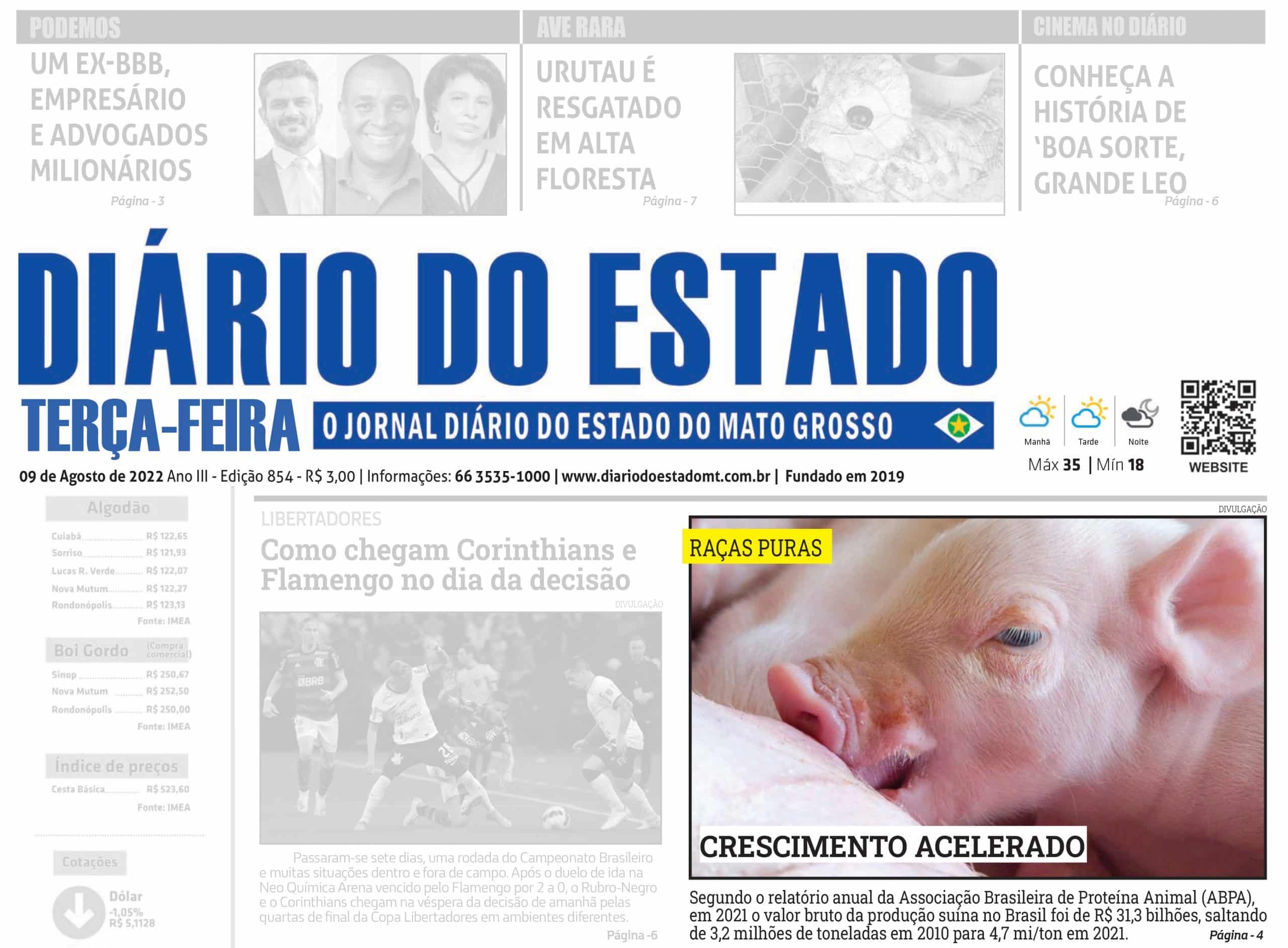 Na edição do dia 9 de agosto, terça-feira, o Diário do Estado do Mato Grosso